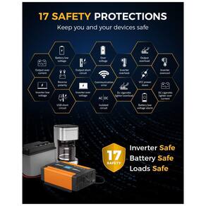 Proteção total Fusível de deslizamento de 35A integrado, Display digital inteligente, 2 Ventilador de resfriamento, Alarme sonoro, proteção de desligamento automático contra sobretensão, baixa tensão, sobrecarga, curto circuito, superaquecimento