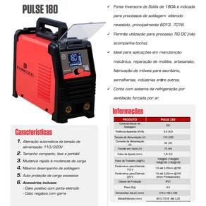 – Fonte Inversora de Solda de 180A e´ indicada para processos de soldagem: eletrodo revestido, principalmente 6013, 7018.
