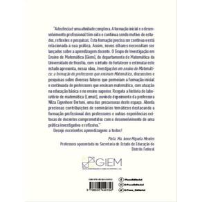 Esta obra, compartilha discussões realizadas no âmbito do GIEM. Grupo do departamento de Matemática da UnB, tem como propósito atuar nos diversos campos de abrangência da Educação Matemática e busca proporcionar espaços de estudos e pesquisas que reúnam professores/pesquisadores da universidade e da escola. Este segundo volume apresenta discussões e pesquisas sobre diversos fatores que permeiam a formação inicial e continuada de professores que ensinam matemática, com atuação na educação básica e no ensino superior. Aborda preciosas contribuições de seminários temáticos destacando a formação profissional dos professores e outras experiências exitosas de docentes comprometidos com o desenvolvimento de uma prática investigativa e reflexiva.