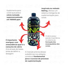 É importante não misturar diretamente os componentes da linha Ionic da OceanTech; primeiro adicione o Ionic Cálcio e aguarde alguns minutos antes de adicionar os demais produtos. Recomenda-se dosar preferencialmente no sump, no compartimento de recalque, e nunca exceder mais do que 3 vezes a dosagem recomendada por dia.