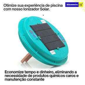 🌀 Alta eficiência no cuidado com a piscina Projetado para atuar com o poder da luz solar, o Ionizador utiliza sua placa fotovoltaica para trabalhar durante o dia, liberando íons metálicos que atuam na manutenção da água.