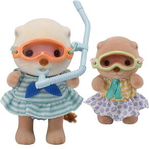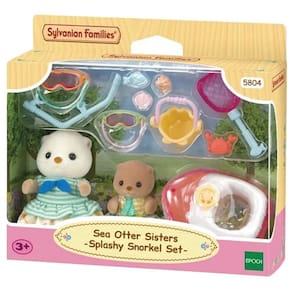 A família das Lontras-marinhas é formada por personagens redondos e adoráveis. Este conjunto inclui a menina e o bebê Lontra-marinha com itens para brincar no mar. Com um barco para bebês, equipamento de mergulho, rede de pesca e muito mais, há muitas maneiras para as irmãs se divertirem no mar! O bebê pode passear no barco e a menina pode usar o equipamento de mergulho. A saia da garota Lontra-marinha pode ser retirada para transformar seu vestido em um maiô.As irmãs podem usar a rede de pesca para pegar marisco, um peixe e um caranguejo.