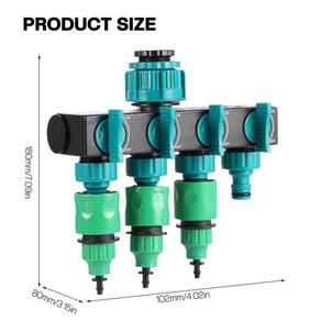 1. Fácil de montar: Basta torcer o conector quando o divisor de mangueira se conectar com sua torneira. 2. Materiais de alta qualidade: Este divisor de mangueira de quatro vias tem um corpo de metal forte e alças longas para operação suave e fácil. 3. Aplicabilidade: divisores de mangueira de plástico de 4 vias com conector rápido perfeito para regar sua flor, plantas, gramado, agricultura, moradias, irrigação industrial. 4. Converta 1 Barb para 4: O divisor de mangueira tem conectores de 4 vias, depois de usar o divisor de água, converta facilmente 1 mamilo em 4 fontes de água de alto fluxo. Pode tornar a sua vida no jardim mais fácil. 5. Economize seu tempo de trabalho: Este é um bom e resistente yeector, usando a válvula divisória de mangueira fará você se sentir super bem. Por um lado. Traga a conveniência sem precedentes, poupe-nos muito tempo de trabalho e eficiência.