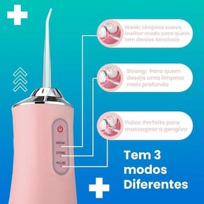 Irrigador Elétrico Jato Água Oral Limpador Dentário Bucal Especificações:- Dentes saudáveis e hálito fresco.- Limpeza profunda, prática e indolor.- Três vezes mais efetivo que o uso do fio dental.Dicas de uso:1. Limpe suavemente a unidade e o reservatório de água com um pano macio e úmido2. Esvazie e seque o tanque de água quando não estiver em uso por um longo período de tempo3. Recomenda-se carregar totalmente este irrigador oral antes da primeira utilização4. Segure a unidade na posição vertical com a ponta do bico voltada para os dentes5. Nunca submergir a unidade principal na água, nem usar embaixo do chuveiroItens inclusos:- Irrigador oral.- 4 bicos diferentes para limpeza mais eficiente.- Cabo USB para carregar