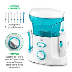 - Limpeza profunda em 360° que atinge todos os cantos da boca - Remove a placa bacteriana e outros resíduos que deixam os dentes amarelados - Limpa implantes, coroas e pontes de maneira 2x mais eficaz - Com 10 níveis de intensidade do jato d água direcionado