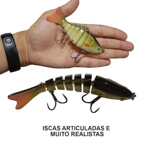 Isca de peixe artificial e articulada, ideal para pescadores que buscam maior eficiência e realismo na pescaria. Seu corpo segmentado proporciona um nado natural, imitando perfeitamente um peixe ferido e atraindo ataques mais agressivos dos predadores.