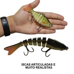 Isca de peixe artificial e articulada, ideal para pescadores que buscam maior eficiência e realismo na pescaria. Seu corpo segmentado proporciona um nado natural, imitando perfeitamente um peixe ferido e atraindo ataques mais agressivos dos predadores.