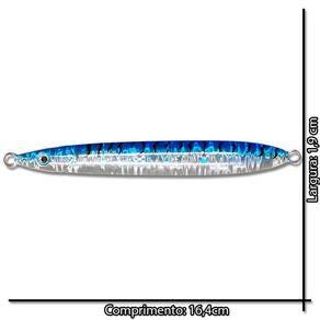 Com cores realistas. Produto Top de linha indispensável na sua maleta de pesca. Especificações: Incluso: 1 peça Modelo: VJ-004 Peso: 140 gramas Dimensões cxl : 15,5cm x 1,7cm Composição: Aço, Cumbo, Polipropileno Estanho e Antimônio. Origem: China Cor: Azul Marca: Não Informado