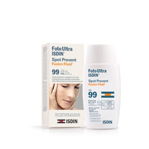 Foto ultra isdin spot prevent fusion fluid fps 99 50ml previne manchas causadas pela exposição solar. Muito alta proteção uvb fps 99 e uva in vitro 61 . Indicações muito alta proteção diária que se funde com a pele. Ajuda a prevenir alterações na pigmentação devido a exposição solar. Ideal para todo tipo de pele. Benefícios muito alta proteção uvb fps 99 e uva in vitro 61 . Sua textura fusion fluid se funde com a pele, ideal para ser utilizado antes da maquiagem. Não comedogênico. Não acnegênico. Dermatologicamente testado. Hipoalergênico. Resistente à água. Ideal para peles normais a secas. Modo de usar aplicar abundantemente sobre a pele seca, meia hora antes da exposição ao sol. Aplicar 2mg/cm² do produto, ao reduzir essa dose, o fator de proteção é reduzido. Reaplicar a cada 2 horas ou se transpirar, nadar ou secar-se com a toalha e durante a exposição ao sol. Reg. Ms. 155/98 Ean: 8429420079717