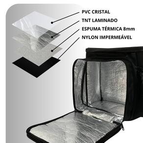 Material: Nylon impermeável, espuma térmica 8mm, tnt laminado e pvc cristal