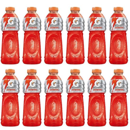 Isotônico gatorade morango com maracujá 500mlContem 12 unidadesVocê sabe por que gatorade sempre foi conhecida como a bebida dos campeões Porque desde que surgiu, na década de 60, gatorade é um dos mais marcantes patrocinadores dos campeonatos esportivos.Repositor hidroeletrolítico para praticantes de atividade física;Ingredientes:Água, sacarose, glicose, cloreto de sódio, citrato de sódio, fosfato de potássio monobásico, acidulante ácido cítrico, aromatizante e corantes artificiais: tartrazina e amarelo crepúsculo.Não contém glúten.Lingredientes: água, sacarose, maltodextrina, cloreto de sódio, citrato de sódio, fosfato de potássio monobásico, acidulante ácido cítrico, aromatizante e corante artificial crepúsculo fcf. Contém sacarose.Não contém glútentabela nutricionalinformação nutricional porção 200ml 1 copo quantidade por porção% vd valor energético46 kcal = 193 kj0,02carboidratos12 g0,04proteínas0 g0gorduras totais0 g0gorduras saturadas0 g0gorduras trans0 gFibra alimentar0 g0sódio99 mg0,04 valores diários de referência com base em uma dieta de 2.000 kg ou 8.400 kj. Seus valores diários podem ser maiores ou menores dependendo de suas necessidades energéticas. vd não estabelecido.