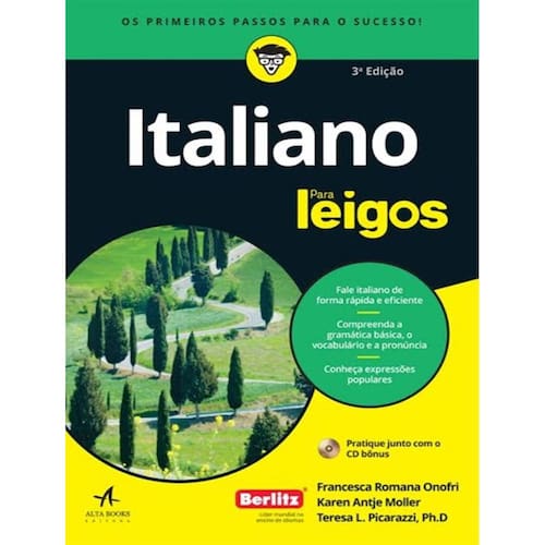 Buon Giorno Se Você Está Buscando Obter Um Nível De Conhecimento Confortável Para Se Comunicar Em Italiano Este Manual Prático E Amigável O Ajudará A Falar Com Clareza E Segurança Aqui Você Encontra O Principal Da Gramática Como Os Principais Tempos Verbais E Conjugações Ainda Conta Com Um Cd De Áudio Atualizado E Abrangente Incluindo Diálogos Sobre Situações Do Cotidiano Um Minidicionário Atualizado Exercícios Práticos Para Testar O Conhecimento Adquirido E Muito Mais Sejam Quais Forem Suas Razões Para Aprender Italiano Italiano Para Leigos Pode Tornar Isso Mais Fácil Dois Experts Em Ajudar Os Leitores A Adquirir Conhecimento O Berlitz Composto Por Especialistas No Ensino De Línguas Estrangeiras E A Alta Books Editora Da Série Best-Seller Para Leigos Uniram-Se Para Produzir Um Livro Que Lhe Dá As Habilidades Necessárias Para A Comunicação Básica Em Italiano Não Estamos Prometendo Fluência Aqui E Sim Um Nível De Comunicação Básica Que Permita Que Você Seja Compreendido Se Tiver Que Cumprimentar Alguém Comprar Um Ingresso Ou Fazer Um Pedido Em Um Restaurante Em Italiano Você Não Precisará Procurar Nada Além De Italiano Para Leigos Pratique Junto Com O Cd Bônus