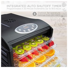 Desfrute de lanches saudáveis caseiros e fáceis, sem aditivos ou conservantes, a uma fração do custo de alimentos mente desidratados perfeito para secar fatias de frutas, ervas secas de longa duração, deliciosos espetos de carne e mais, também uma maneira econômica de preservar alimentos de trás para a frente O ventilador montado foi projetado para promover uma secagem uniforme com fluxo de ar ideal sem superaquecimento, e um termostato ajustável com temporizador de desligamento automático garante que os alimentos sejam desidratados em temperatura e nitidez ideais 9 racks de secagem ajustáveis, espaçosos 13 X 12 acomodam uma ampla Variedade de frutas, ervas, legumes e carnes, ideal para famílias grandes, jardineiros, esportistas, amadores de atividades ao ar livre, entusiasta da saúde O termostato digital tem oito níveis de temperatura de 30 a 70 graus, inclui 1 folha de malha fina antiaderente para secagem Alimentos pequenos como ervas, 1 folha sólida para fazer roll ups de frutas, proteção de segurança contra superaquecimento, está em conformidade com os regulamentos de segurança elétrica dos EUA, ETL, dimensões do produto 17. 71 x 13,5 x 16,3 polegadas