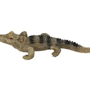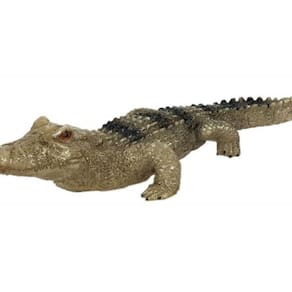 Jacare de Resina Pequeno Enfeite de Jardim Material Resina Animal de resina bastante realístico Acabamento perfeito Pintura feita a mão com tinta de ótima qualidade Peça resistente ao tempo sol e chuva pode ser colocada em um jardim ou até mesmo próximo de uma fonte de agua. Contem 1 peça na embalagem