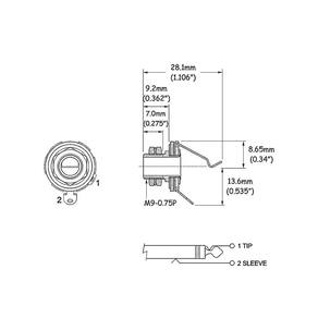 - Jack curto de saída mono com rosca MP.0-0.75 - Aceita plugue padrão 1/4, ideal para a maioria dos instrumentos de cordas elétricos - Acompanha uma arruela e duas porcas.