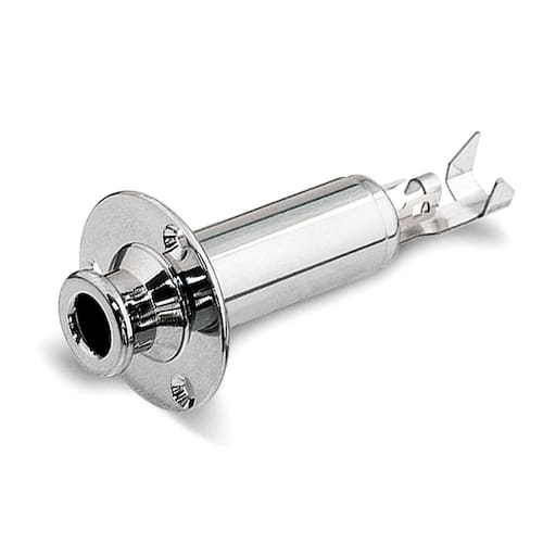 - Jack cilíndrico estéreo com acabamento cromado - Travamento feito através de 3 parafusos tipo Takamine - Aceita plugue padrão de 1/4" - Instalação e manutenção fácil e rápida.