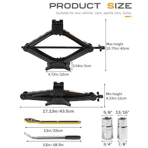 - Capacidade máxima de elevação: 2 toneladas - Faixa de elevação: 4,33 a 15,75 polegadas Você receberá - 1 conector 2T. - 1 chave catraca. - 1 chave de pneu. -1 luva - 1 medidor de pressão de pneu tipo lápis. - 1 bolsa de armazenamento. Vantagens do nosso produto -Função: Para qualquer emergência, este kit de macaco de carro ajudará você a trocar pneus de forma rápida e fácil - Material: materiais de alta qualidade para suportar o uso pesado, e sua estrutura resistente à corrosão garante durabilidade e longevidade - Características: o macaco de tesoura oferece uma ampla variedade mais ampla para alcançar facilmente sob sedãs de piso baixo ou levantar SUVs de corpo alto. - Aplicável: adequado para carros padrão, mas também adequado para SUV, MPV, sedan, cupê, crossover, etc. - Conteúdo da embalagem: você receberá 1 conector 2T; 1 chave catraca; 1 chave de pneu; 1 luva; 1 medidor de pressão de pneu tipo lápis; 1 bolsa de armazenamento. Com este kit, você não precisa de mais nada. - Materiais de alta qualidade: nosso kit de macaco é feito de materiais de alta qualidade para suportar o uso pesado, e sua estrutura resistente à corrosão garante durabilidade e longevidade. Para qualquer emergência, este kit de macaco de carro ajudará você a trocar pneus de forma rápida e fácil. - Capacidade do macaco: a capacidade máxima de elevação do macaco de tesoura do carro é de 2 toneladas e seu alcance de elevação é de 11 cm a 15,75 polegadas (40 cm); o macaco tesoura oferece um alcance mais amplo para alcançar facilmente sob sedãs de piso baixo ou levantar SUVs de corpo alto. - Fácil de usar: simples e fácil de operar, enquanto a chave de pneu e o kit de troca de pneus são projetados para fornecer uma aderência confortável e alavancagem máxima, garantindo um desempenho confiável para todas as suas necessidades de elevação. O tamanho compacto facilita o armazenamento no porta-malas ou banco traseiro. - Ampla aplicação: adequado para carros padrão, mas também adequado para SUV, MPV, sedan, cupê, crossover, etc. É perfeito para situações de emergência, como quando você precisa substituir um pneu furado, remover uma roda presa ou realizar outros reparos de veículos.