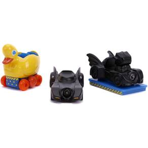 Jada Batman 3 Peças Set Nano Hollywood Rides Diecast Cars 3-pack Batman Returns Batmobile- The Penguin Duck - The Penguin Ride Marca do produto: Jada. Coleção: Nano Hollywood Rides. Aproximadamente 4cm de comprimento. Miniatura em Metal. Ean: 801310316160