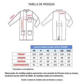Jaleco masculino manga longa é confeccionado em Microsarja, tecido 100% poliéster.