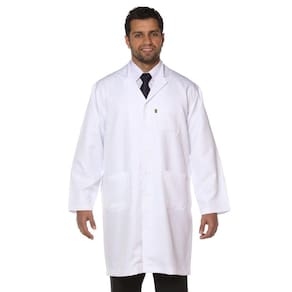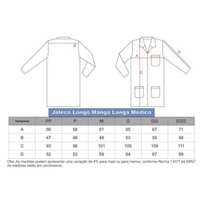 Jaleco masculino manga longa é confeccionado em Gabardine, tecido 100% poliéster.