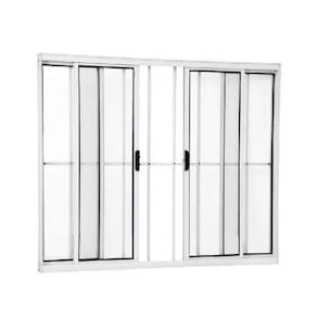 Janela 100x150 4 Folhas Vidro c/Grade - Alumínio Branco - Linha 18 Modular Janela de correr COM GRADE com 2 folhas de vidro fixas e 2 folhas de vidro móveis (de correr). Fecho central. Já vem com vidro incluso e pronta para instalar. Não enferruja. De fabricação própria.