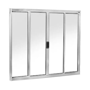Janela 100x200 4 Folhas Vidro - Alumínio Brilhante - Linha 18 Modular Janela de correr com 2 folhas de vidro fixas e 2 folhas de vidro móveis (de correr). Fecho central. Já vem com vidro incluso e pronta para instalar. Não enferruja. De fabricação própria.