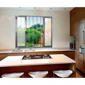 Janela 4 folhas de Alumínio Brilhante C/grade
