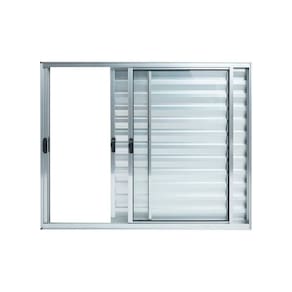 Janela Veneziana 3 folhas sem grade acabamento alumínio brilhante ou pintura branca, perfil linha modular, são três folhas, sendo uma palhetada fixa, uma palhetada móvel, um vidro móvel, atende norma ABNT 10.821.