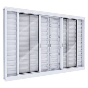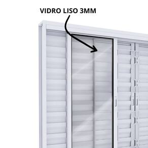 Com 6 folhas (2 fixas e 4 móveis), Seus vidros lisos são fixados com borracha EPDM, facilitando a troca em caso de necessidade. Conta ainda com pintura eletrostática em tinta poliéster a pó, sem parafusos aparentes e fechos de alumínio embutidos na cor do produto. São 6 anos de garantia para sua segurança. É um modelo ideal para quartos.