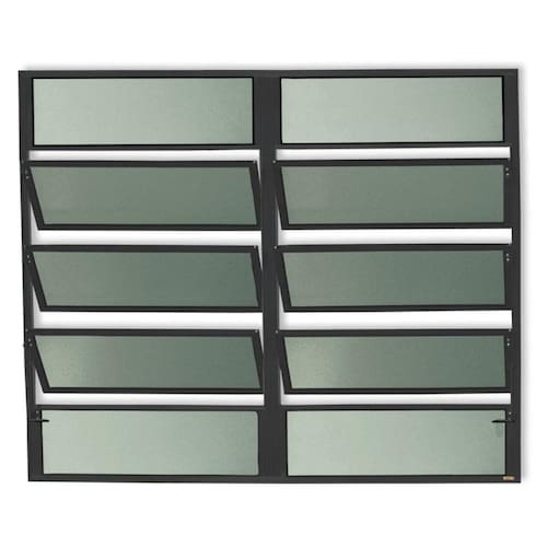 Janela Basculante 2 Secões de Alumínio Linha Plus Pintura Eletrostática Preta 4 Folhas Fixas e 6 Folhas Móveis Vidro Mini Boreal 4mm Altura 100 Cm Largura 200 Cm Requadro 2,5 Cm Garantia de 5 anos contra defeitos de fabricação