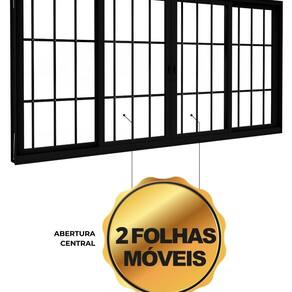 Possui 4 folhas — 2 fixas e 2 móveis com abertura central — que proporcionam excelente ventilação e entrada de luz natural.