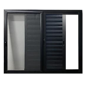 A peça possui 3 folhas móveis, sendo duas folhas venezianas e a terceira folha de vidro, com tela mosquiteira removível. Abertura dupla, para ambos os lados.