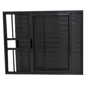 Janela de Alumínio Preto Veneziana 3 Folhas Linha 25 Com Grade- Bergame