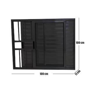 Janela Veneziana de Alumínio 3 Folhas 100 x 100cm Linha 25 com Grade Esquadrias Bergame Preto