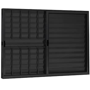 Janela de Alumínio Preto Veneziana 3 Folhas Com Grade Linha Modular - Bergame