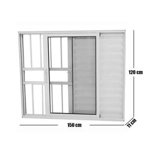 Janela Veneziana de Alumínio 3 Folhas 120 x 150cm com Grade Linha 25 Esquadrias Bergame Branco