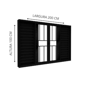 Janela Veneziana de Alumínio 4 Folhas Móveis e 2 Folhas Fixas 100x200cm Lucasa Ideale Preto