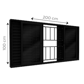 Janela Veneziana de Alumínio 6 Folhas com Grade e Fecho Embutido 100x200cm Lucasa Eccellente Preto