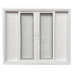 A peça é do tipo de correr e apresenta 6 folhas: 4 móveis, sendo 2 venezianas e 2 de vidro e as 2 restantes são fixas do tipo veneziana.