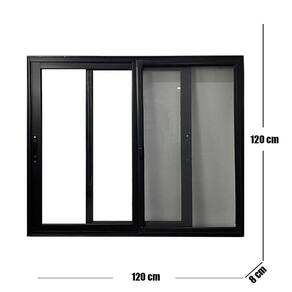 Janela Vitro 2 Folhas Móveis com Tela Mosquiteira Alumínio 120x120 cm Linha 25 Preto