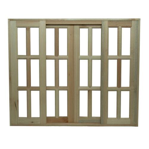 Acompanha o produto: - 01 janela de correr 4 folhas01 jogo de vistas para ambos os ladosBatente 13 CM Madeira : Eucalipto Garantia: - Garantia de Loja