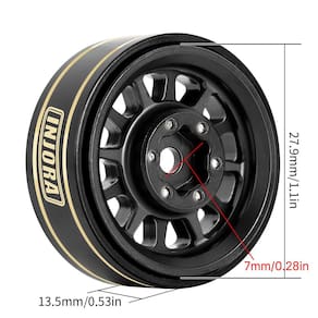 Especificações: Número da peça: W1101 Material: Latão Deslocamento negativo: cerca de 3 mm Diâmetro externo: 27,9 mm (1,1 pol.) Largura: 13,5 mm (0,53 pol.) Cubo da roda: 7 mm (0,28 pol.) Cada peso: 42 g/peças (42 g) Conteúdo da embalagem: 4 rodas de carro RC de 2,5 cm Plus - O revestimento preto adiciona um toque brilhante e melhor aparência, para evitar corrosão também. - Ofereça peso adicional no ponto mais baixo do seu veículo para ajudar a maximizar a estabilidade. - A roda 1.0 plus deixará seu carro RC à frente da curva com desempenho e aparência. - Estas rodas 1.0 plus têm cerca de 2,8 cm, maiores do que 1,0 rodas. Rodas maiores dão ao seu veículo uma postura mais agressiva e maior presença de palco. - Observação: Eles são compatíveis com todos os pneus INJORA de 2,5 cm. Não compatível com pneus TRX4M. Adequado para carros de lagartas TRX4M SCX24 FCX24.