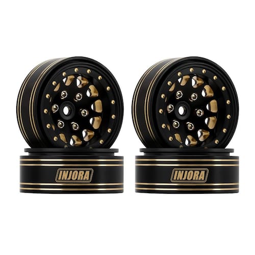Especificações da roda: Número da peça: W1301 Material: latão Diâmetro externo: 33,5 mm (1,32 pol.) Largura: 15,5 mm (0,61 pol.) Cubo da roda: 7 mm (0,28 pol.) Cada peso: 68 g/unidades (2,40 oz) Lista de pacotes: 4 rodas INJORA de 1,3 polegadas - Fabricado em latão de alta qualidade, cada roda pesando 68 g , aumentando a estabilidade de 1/24 e 1/3 Rastreador RC 18 . - Tração aprimorada: o peso adicional no ponto mais baixo melhora a tração, especialmente em terrenos desafiadores, garantindo que seu veículo mantenha o controle. - Postura agressiva: rodas maiores de 1,3 polegadas não apenas aumentam o desempenho, mas também dão ao seu rastreador RC uma presença ousada e dominante em qualquer pista ou trilha. - Desempenho e estilo: essas rodas não apenas se destacam em desempenho, mas também possuem um acabamento em latão elegante para uma aparência de destaque. - Engenharia de precisão: usinado em CNC com perfeição com dimensões como 33,5 mm de diâmetro externo e 15,5 mm de largura, garantindo um ajuste perfeito para o carro RC SCX24 TRX4M.
