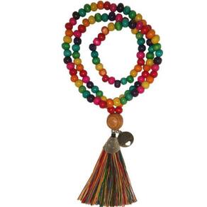 Japamala 108 contas de madeira 7 Chacras Japamala 108 contas de Madeira nas cores dos sete chacras e meru Madeira color natural amarela, detalhes e pingente Ho'oponopono em metal prateado. Tassel Color 7 Chacras. Ean: 7796841706364