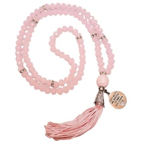 Japamala 108 contas em cristal rosa e pingente ho'oponopono