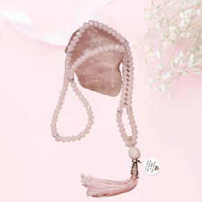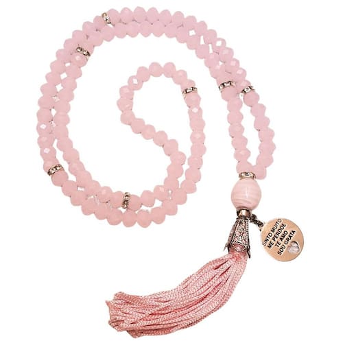 sempre em sintonia com as melhores vibrações, as criações da encanto das contas são produzidas dentro de cuidadosas normas de qualidade. Desde a busca das melhores pedras até a pubicação de nossas coleções, todo o processo de confecção dos japamalas é feito pensando em encantar e atingir a satisfação plena de quem as recebe, fazendo parte dos momentos de meditação, conexão, elevação e autocuidado. Japamala 108 contas em cristal facetado rosa e pingente ho'oponopono