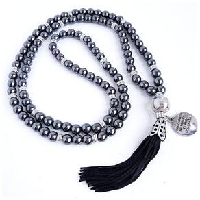 sempre em sintonia com as melhores vibrações, as criações da encanto das contas são produzidas dentro de cuidadosas normas de qualidade. Desde a busca das melhores pedras até a pubicação de nossas coleções, todo o processo de confecção dos japamalas é feito pensando em encantar e atingir a satisfação plena de quem as recebe, fazendo parte dos momentos de meditação, conexão, elevação e autocuidado. Japamala 108 contas em pedras naturais hematita e pingente ho'oponopono