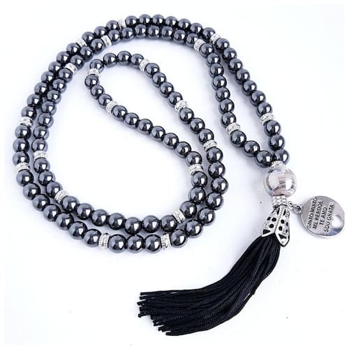 repelindo e bloqueando toda negatividade. Desperta amor próprio e autoestima, coragem e determinação. Para desfrutar dos benefícios da hematita é importante tê-la sempre por perto. Uma maneira de conseguir isso, é usá-la como colar, pulseira, no bolso, ou até mesmo embaixo do travesseiro. Maneiras de usufruir dos benefícios do seu japamala: