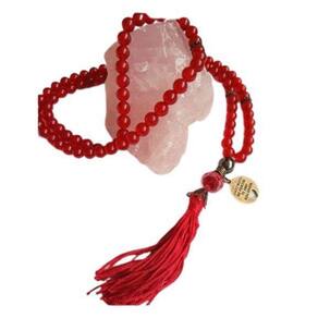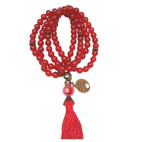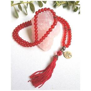 confeccionado artesanalmente com pedras naturais jade vermelha. Pingente: medalha ho'oponopono número de contas: 108 comprimento incluindo tassel: 55cm