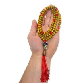 Japamala Zé Pelintra Dado 108 Contas Madeira 8 mm Vermelho Produto de ótima qualidade e lindo 100% . Japamala é um cordão sagrado feito de contas, para ajudar o praticante de meditação a entrar no estado meditativo. No yoga e no hinduísmo, possui 108 contas. O nome japamala é masculino o japamala , tem origem no sânscrito e é uma palavra composta: japa é o ato de sussurrar ou murmurar repetidamente mantras ou nomes de divindades e Mala significa guirlanda, grinalda ou coroa. É um objeto antigo de devoção espiritual, conhecido também como rosário de orações no ocidente. É um artesanato muito utilizado para ajudar nas orações e mentalizações como marcador. Temos então duas Correntes: uma espiritual, Japa, e outra material, Mala. Presenteie uma pessoa querida com os nossos produtos de qualidade Marca: Não Informado